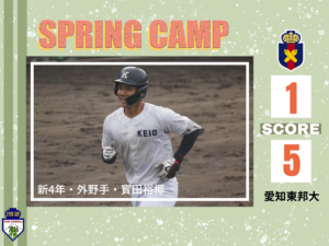 令和8年度春季オープン戦 対立命館大(A)は、8-6で勝利いたしました。